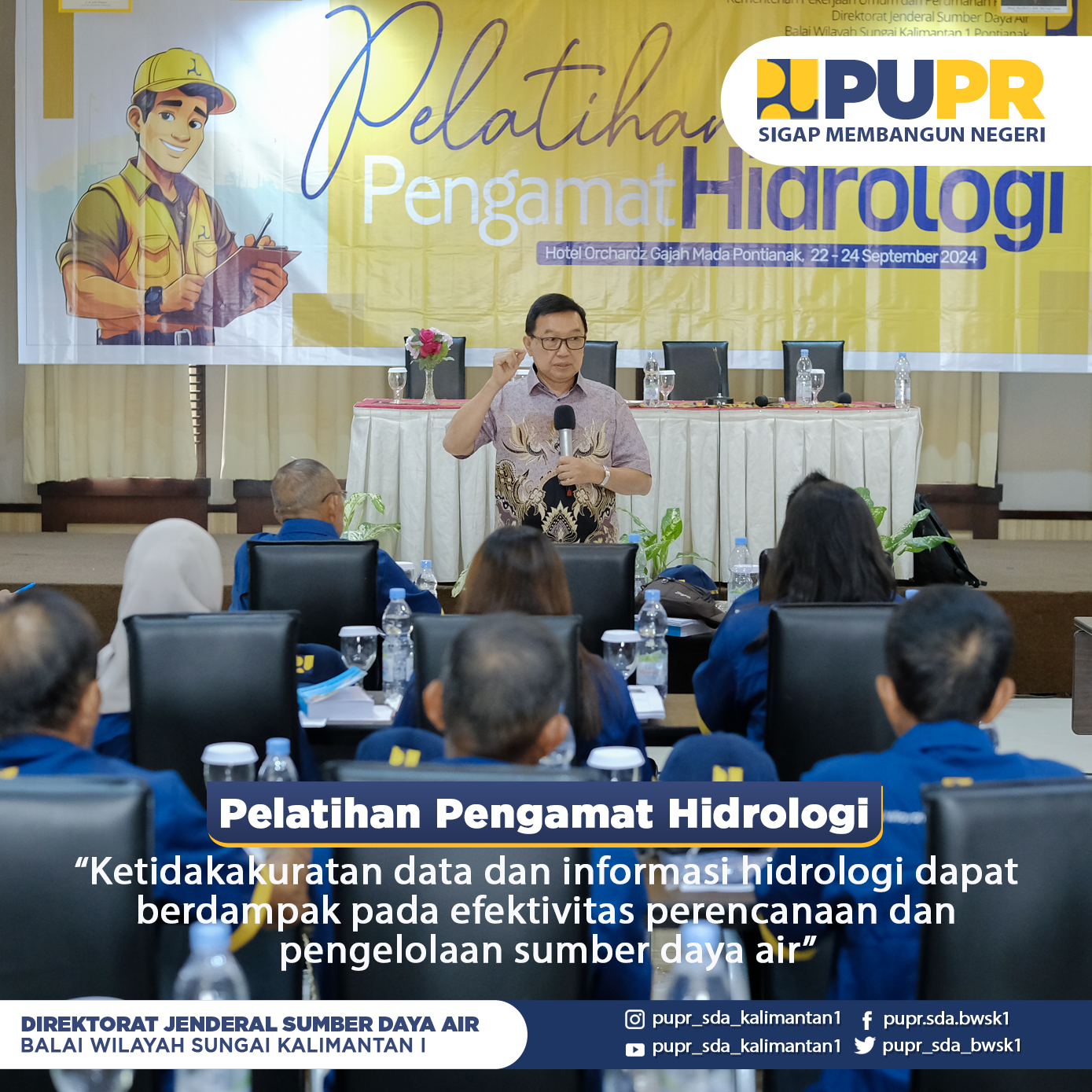 Balai Wilayah Sungai Kalimantan I Pontianak melaksanakan kegiatan Pelatihan Pengamat Hidrologi yang diadakan di Hotel Orchardz Gajahmada Pontianak pada 22-24 September 2024, Senin (23/09). Acara ini dihadiri oleh para pengamat dari Pos Hidrologi di lingkungan BWS Kalimantan I Pontianak dan bertujuan untuk meningkatkan pemahaman serta keterampilan dalam pengelolaan data hidrologi.