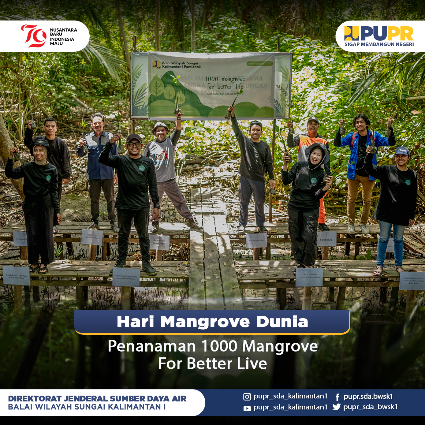 Balai Wilayah Sungai Kalimantan I melaksanakan kegiatan Penanaman 1000 Mangrove dalam rangka memperingati Hari Mangrove Dunia yang dilaksanakan pada tanggal 8-9 Agustus 2024 di Desa Sungai Kupah, Kecamatan Sungai Kakap, Kabupaten Kuburaya, Jumat (09/08).
