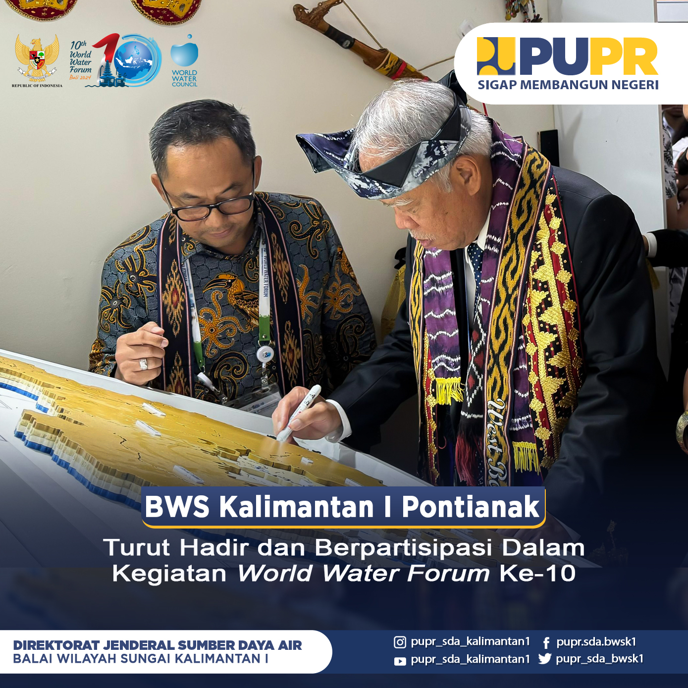 Dalam kesempatan tersebut Bapak Dr. Ir. H. Mochamad Basuki Hadimoeljono, M.Sc., Ph.D selaku Menteri PUPR juga menghampiri booth BWSK I Pontianak dan menandatangani maket Peta Danau - Danau di Hulu Sungai Kapuas.