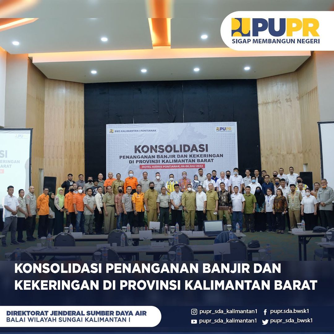 Dalam rangka mengantisipasi serta meningkatkan kewaspadaan terhadap potensi cuaca ekstrim yang dapat menyebabkan bencana Hidrometeorologi, Balai Wilayah Sungai Kalimantan I Pontianak melaksanakan kegiatan Konsolidasi penanganan banjir dan kekeringan di Provinsi Kalimantan barat pada Selasa (5/07/2022) di Hotel Harris Pontianak.