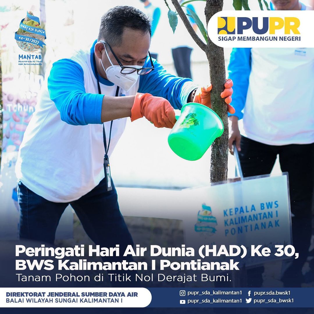 Dalam rangka memperingati Hari Air Dunia (HAD) yang diperingati setiap 22 Maret, Balai Wilayah Sungai Kalimantan I Pontianak menggelar acara penanaman pohon di beberapa titik lokasi, salah satunya di Tugu Khatulistiwa Pontianak, Rabu (30/03/2022).