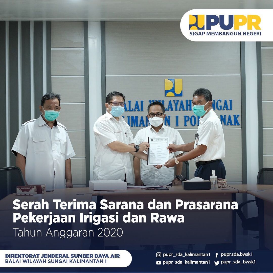 Balai Wilayah Sungai Kalimantan I Pontianak melalui PPK Irigasi dan Rawa mengadakan acara serah terima sarana dan prasarana pekerjaan irigasi dan rawa tahun anggaran 2020 dan pengadaan speedboat tahun anggaran 2021 sebanyak dua unit di Aula Kapuas BWS Kalimantan I Pontianak, Senin (03/01).