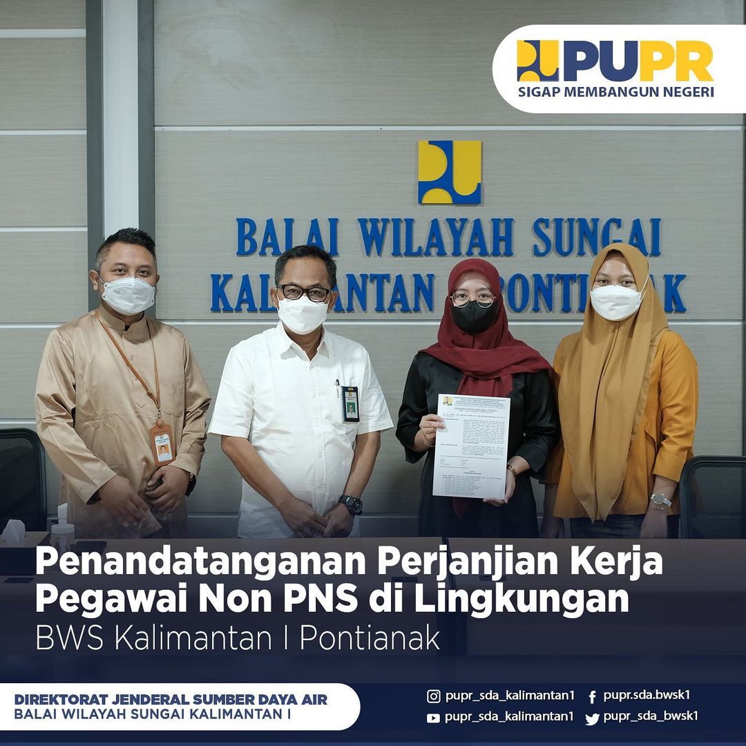 BWS Kalimantan I Pontianak melakukan penandatanganan perjanjian kerja pegawai Non PNS di lingkunan Satuan Kerja Balai, Satuan Kerja OP SDA, SNVT-PJPA, dan SNVT PJSA tahun anggaran 2022, pada Selasa (04/01)