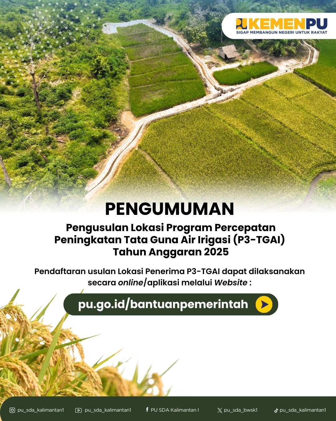 Pengumuman Perpanjangan Pengusulan Lokasi Program Percepatan Peningkatan Tata Guna Air Irigasi (P3-TGAI) Tahun Anggaran 2025
